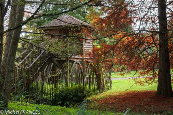 C’est toujours un grand plaisir de se balader dans l’arboretum mais nous avons été déçus de constater que la « cabane perchée » située au nord-ouest du parc a été démolie. Lors de nos derniers passages, nous avions constaté qu’elle se dégradait et que les seules mesures de sauvegarde consistaient en la mise en place de clôtures pour interdire l’accès. Pourtant, ça ne devait pas coûter bien cher d’entretenir un tel ouvrage en bois. J’espère qu’il est prévu de le reconstruire …