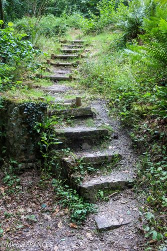 Jusqu’à présent nous nous rendions dans la Vallée-aux-Loups en vélo, il y a environ une vingtaine de kilomètres depuis le sud de Paris en suivant les itinéraires cyclables. Nous avons découvert que la récente ligne de tramway T10, ouverte en 2023, pouvait nous mener à l’orée du domaine de la Vallée-aux-Loups. De là une balade d’environ 5 kilomètres permet de le traverser en suivant un sentier de PR balisé en jaune.